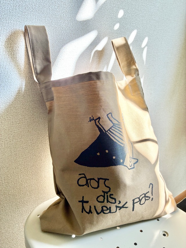 ジャミン船長のbottle bag、 600mlのペットボトルが入るsizeです 持ち手には仏語を刷りました bottle入れとしてではなくても、 縦長の何か、例えば日傘なども良いかもしれません♪ 絵柄 / ジャミン船長 & 文字 material / 綿50 エステル45 ポリエステル5 % size / H23 W11.5 D(まち)5.5 cm 持ち手幅4.7 持ち手長さ21 cm ☆1点1点handprintのためプリント位置に若干の差がございます。 ☆printはシルクスクリーン印刷です。 ☆素材の性質によって洗濯後、縮みが出る場合があります。 *写真画像と実際の商品の色味に若干の違いがある場合がございます。 予めご了承くださいませ。