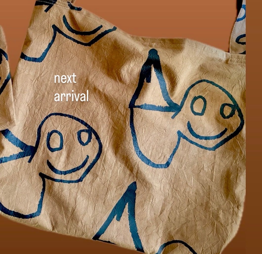 発色が綺麗な青色地の、oyaji柄綿bagです ショルダーも付いた2wayタイプの持ち手、 柔らかな綿素材をニ枚仕立てでつくりました 小さめの内ポケットが付いています とても柔らかい生地で、 ほんのりリネンのような風合いを感じさせるような素材感です♪ ☆赤色oyaji bagと形状は同じですが 生地は別のものとなります 青の生地が柔らかな素材になるので 荷物入れた際に下により落ちる為、ショルダー長さを赤より短めにしショルダー幅も太くしたり、など 素材の雰囲気により若干サイズをかえています 絵柄 / oyaji (大) material / 綿100% size / W44.5 H35 cm D(まち)11.5cm 持ち手長さ 30cm 持ち手幅5.5cm 程 ショルダー長さ 57.4cm 持ち手幅 8.5cm 程 内ポケット W12 H12.5cm程 ☆素材の性質によって洗濯後、縮みが出る場合があります *写真画像と実際の商品の色味に若干の違いがある場合がございます 予めご了承くださいませ⭐️