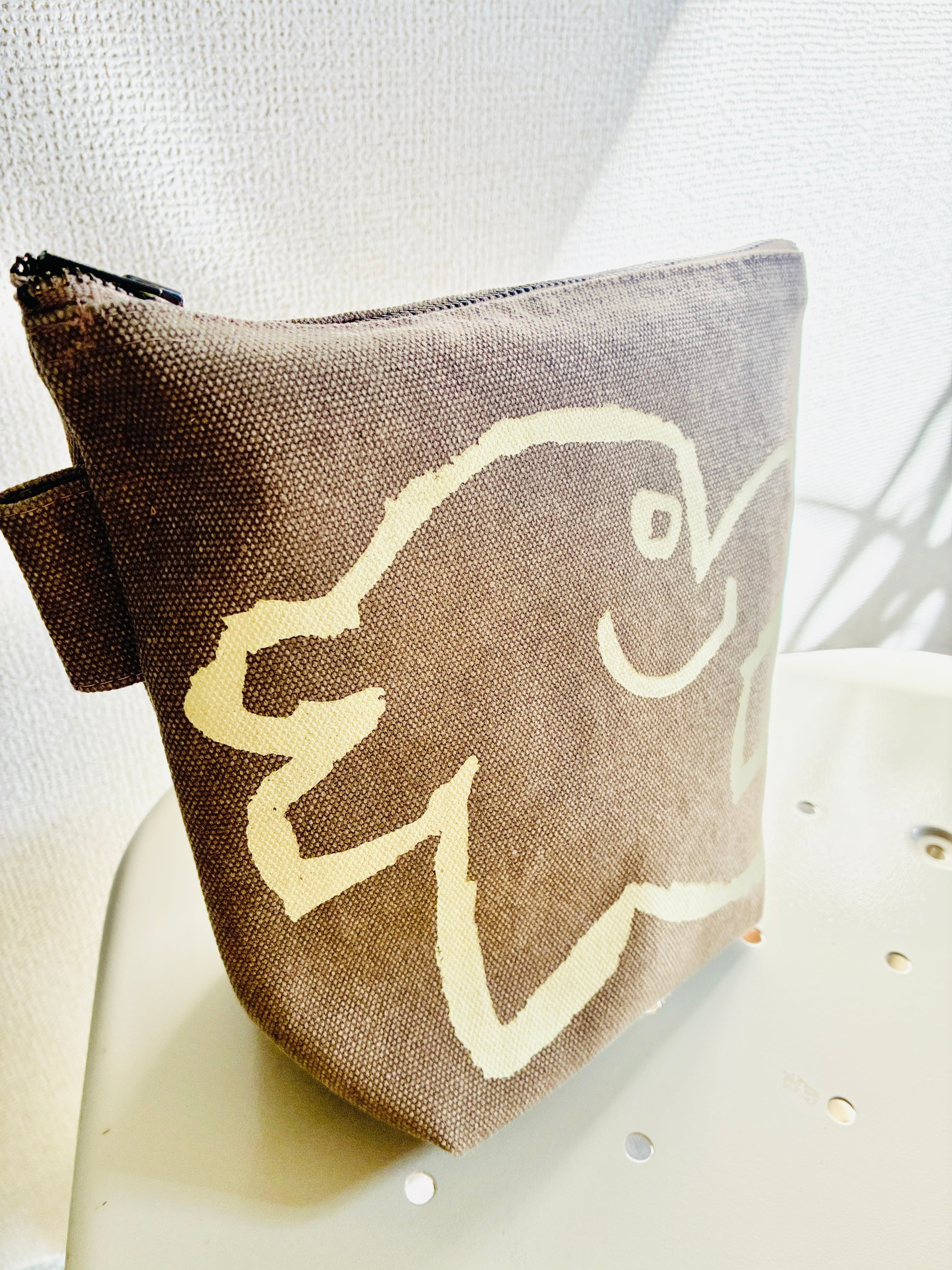 KUMOの絵柄のシンプルなポーチです 絵柄を クリーム色のインクで刷りました 生地は しっかりした生地厚の綿素材です ファスナーは ブロンズ色のメタルファスナーを 使用しています 絵柄 / KUMO material / ・本体 綿100% (帆布のようにしっかりした生地厚) ・printインク - シルクスクリーンインク(合成樹脂-アクリル,ポリウレタン) ・ネームタグ - 綿麻混地 size / H 18.5 W 19.8 D8.5 cm ほど サイドのタグ部分 H3.3 W1.6cm ファスナーの開き 18cm *素材の性質によって洗濯後、縮みが出る場合がございます 乾燥機使用は生地素材によっては大幅に縮むことがあります *掲載画像は、 自然光,室内光、影や光の当たっている等撮影時の環境などにより、やや違っています また、 実物とデジタル画面で見る色味には やや差異がございます あらかじめご了承くださいませ☆