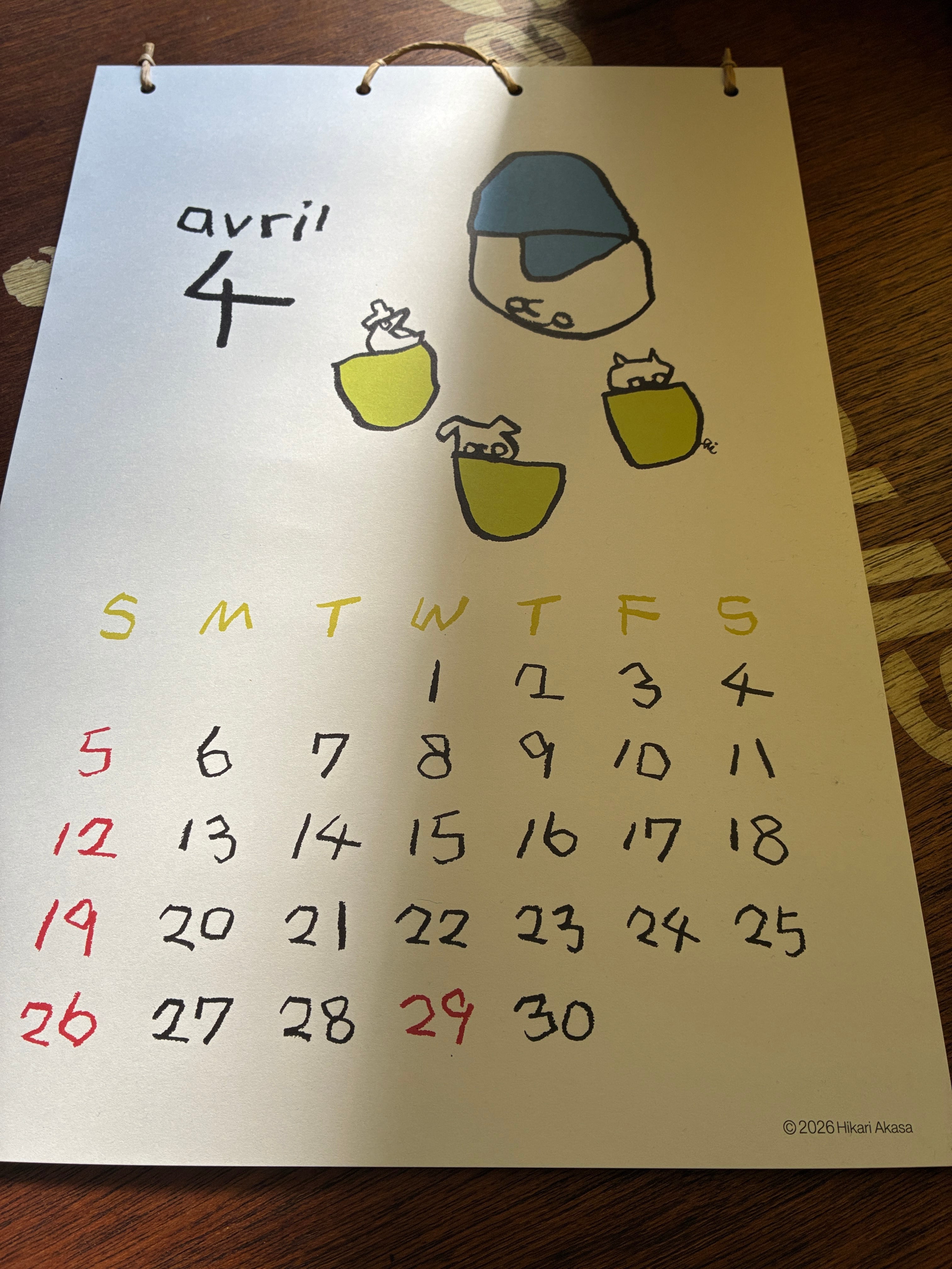 Hikari Akasaイラストレーション、B4サイズの4月始まりカレンダー